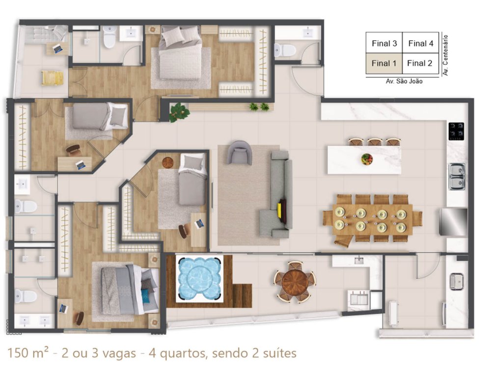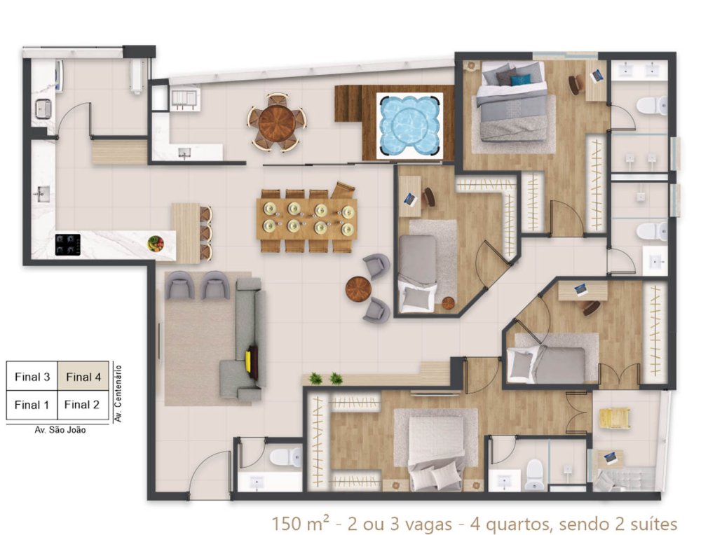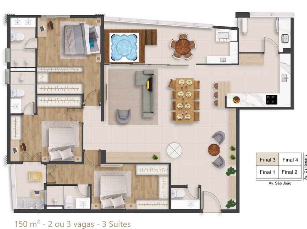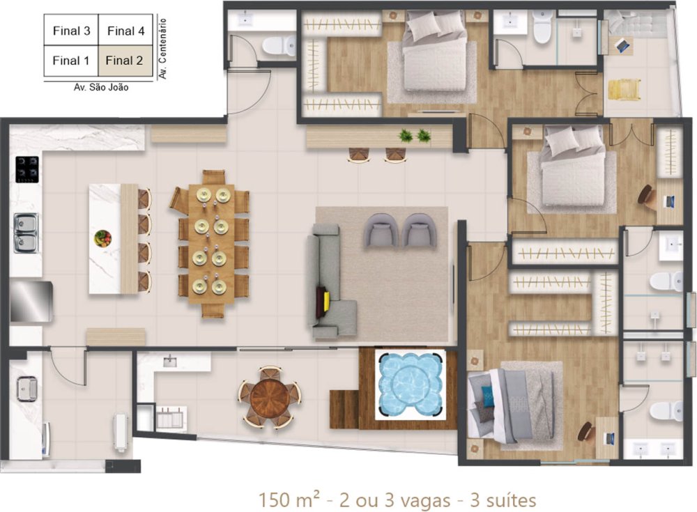 | Apartamento Alto Padrão | R$ 2.537.700,00 | - | 150 m² | 3 | 3 | 0 | 2 |